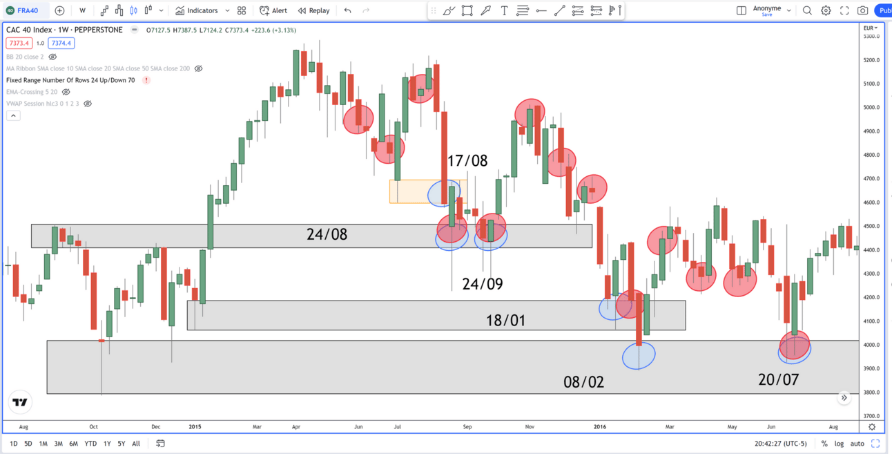 Enfin, il existe une règle en analyse technique, le changement de polarité. Selon cette règle, une ancienne résistance devient support, ces zones deviennent également zone d’accumulation rationnelle, comme dans la figure 3.
