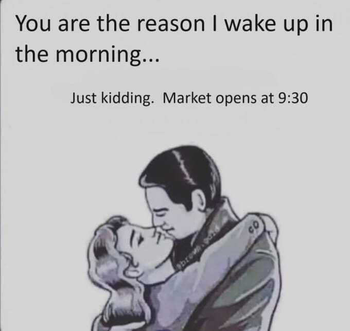 Traduction : Tu es la raison pour laquelle je me lève le matin... C'est juste une blague. Le marché ouvre à 9h30.