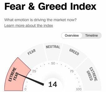“extreme fear” (peur extrême), il convient de surveiller d’éventuels signaux de capitulation, rimant souvent avec creux de court terme.